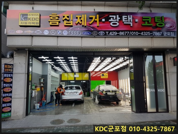 KDC군포점은 자동차외형복원전문점으로 자동차 도색,판금도색,덴트,광택코팅,유리막코팅,흠집제거,범버복원등